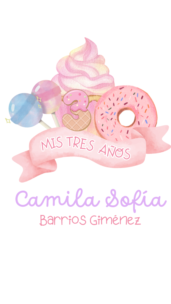 Nuestra dulce Camilita esta lista para festejar sus 3 añitos, te espera para celebrar en su candy party donde los ingredientes principales serán la magia, la alegría y los abrazos